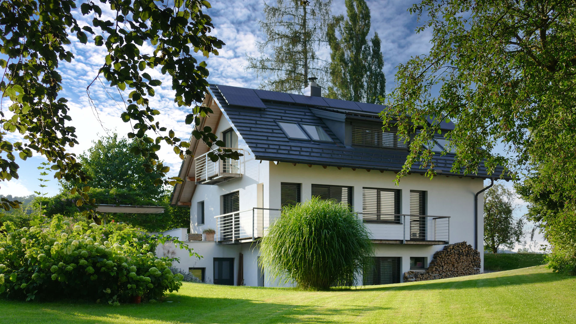 Ein Balkon, der sich von der Terrasse entlang der südwestlichen Fassade erstreckt, gliedert das Gebäude und setzt einen markanten architektonischen Akzent. Moderne Gebäudetechnik sorgt für nachhaltigen Betrieb: Eine Wasser/Wasser-Wärmepumpenanlage sowie eine Photovoltaikanlage am Dach liefern Heizenergie und Warmwasser. Damit wird eine weitgehende Unabhängigkeit von externer Energieversorgung erreicht.
