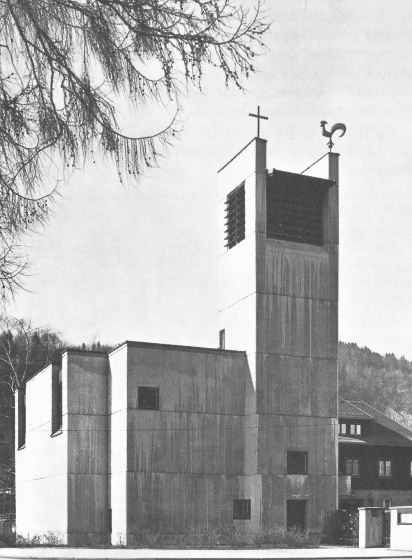 Architektonisch funktional ergänzt wurde das Kirchengebäude durch ein neu errichtetes Pfarrhaus mit Flugdachkonstruktion und angegliederten KFZ-Abstellplätzen. Die klare Trennung der Nutzungen bei gleichzeitig harmonischer Gesamterscheinung schafft eine Einheit von sakraler Funktion, Gemeindeorganisation und städtebaulicher Wirkung.